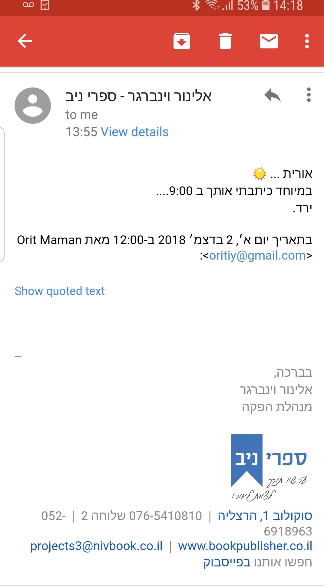 ייאמר לזכות ספרי ניב שהם מראש אמרו שייקח לי כחצי שנה. וכך קרה.